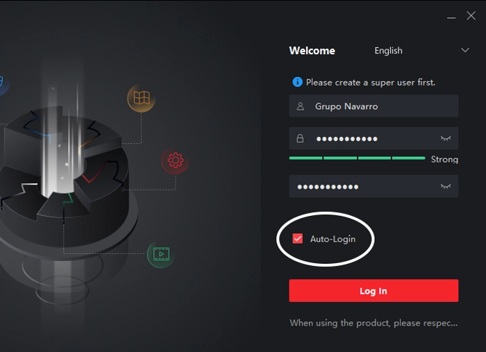 Para poder utilizar este programa, es necesario crear un Super Usuario, que le servirá para acceder al iVMS-4200 en su PC de forma local. Ojo, no debe confundirlo con el usuario y contraseña de sus cámaras o grabador.
