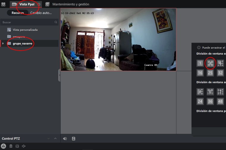 En la parte inferior derecha hay un ícono de cuadrícula que le permite elegir entre la cantidad de canales que desea visualizar en la pantalla según la cantidad de cámaras que disponga.